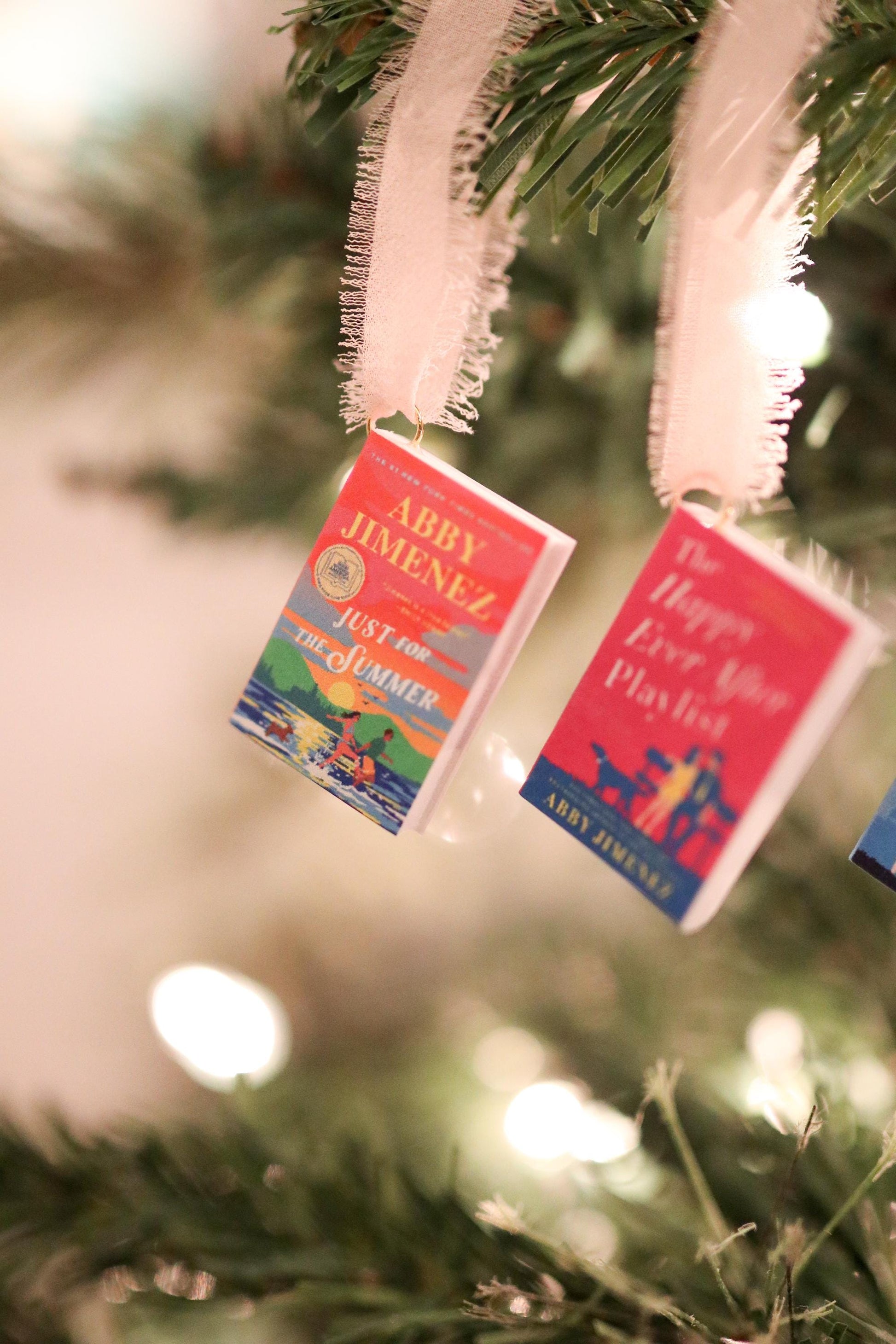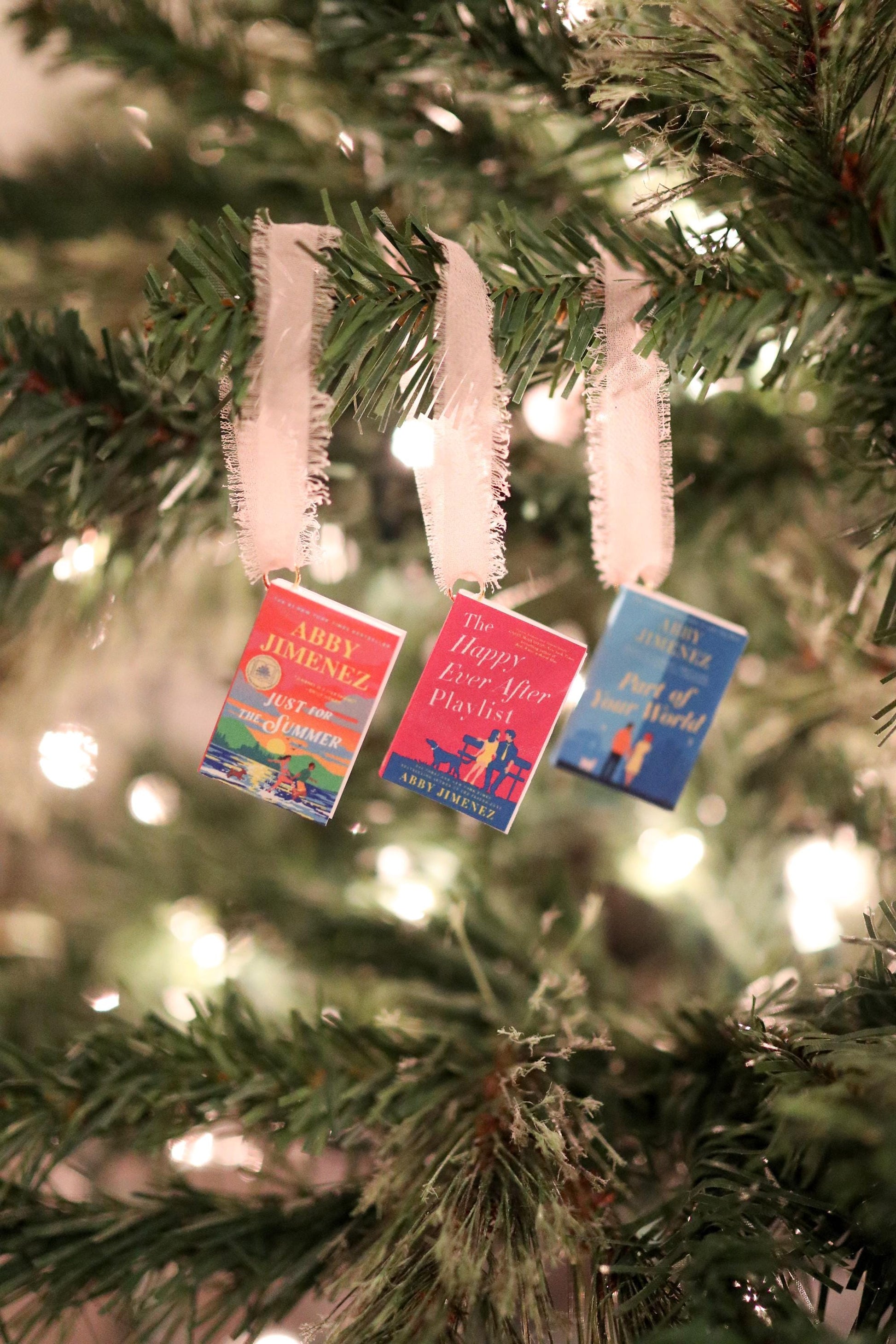 A handmade set of Abby Jimenez inspired mini book ornaments!