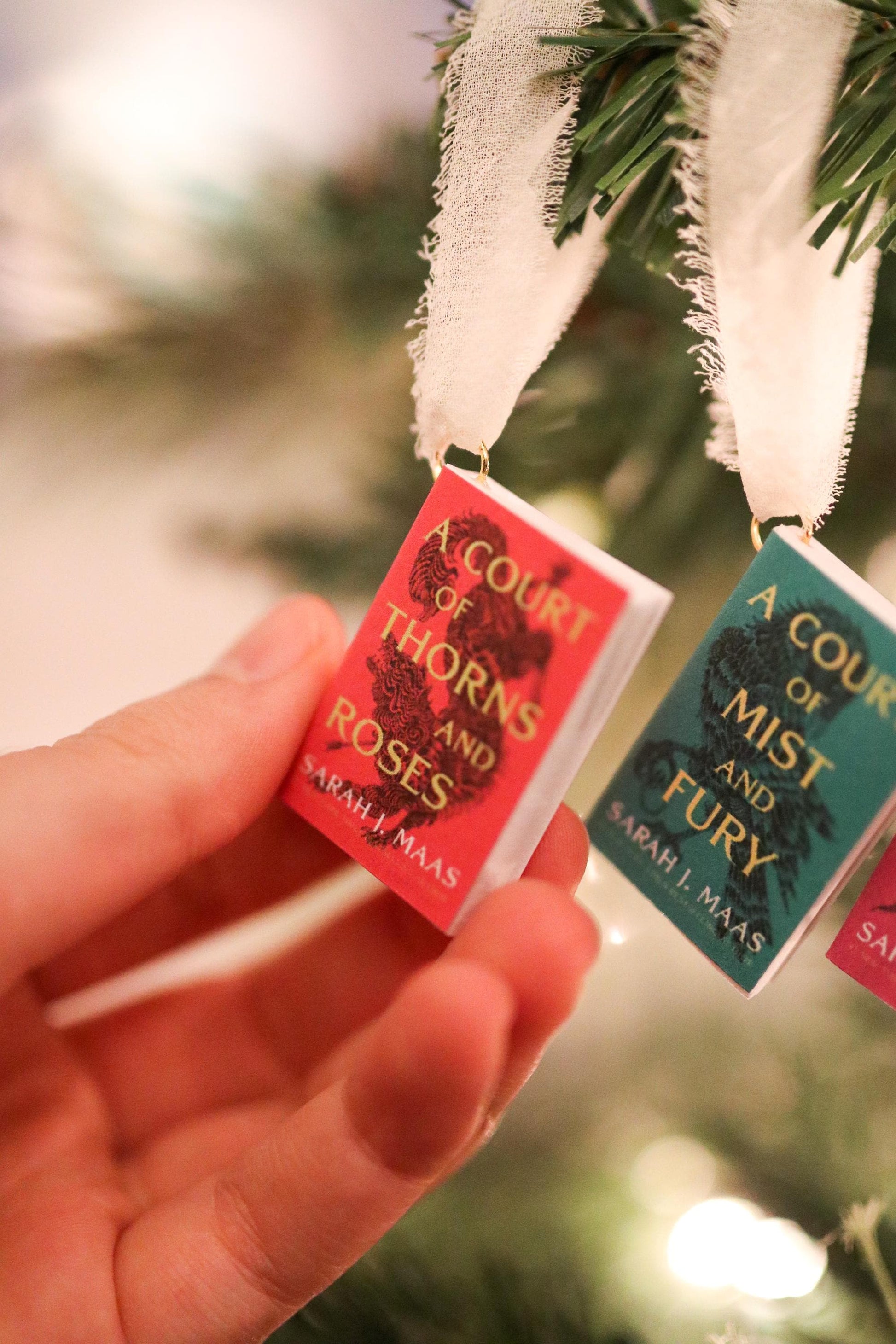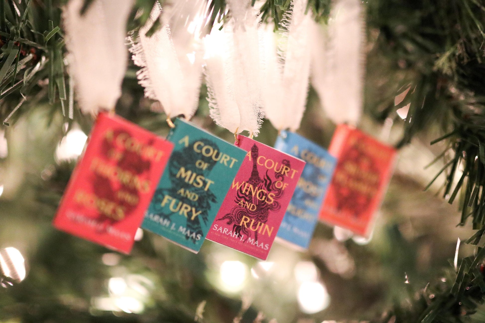 A handmade set of ACOTAR mini book ornaments!