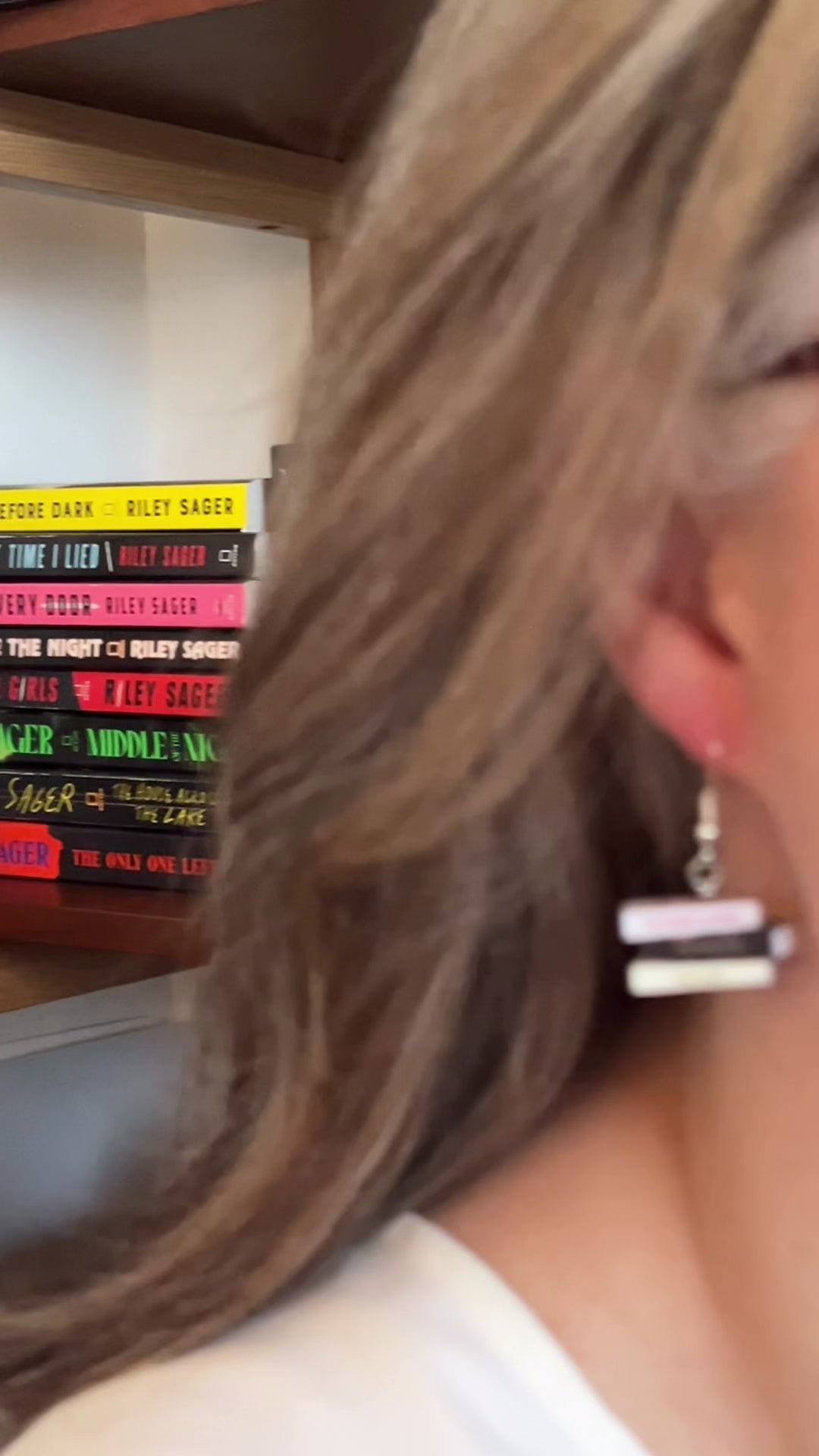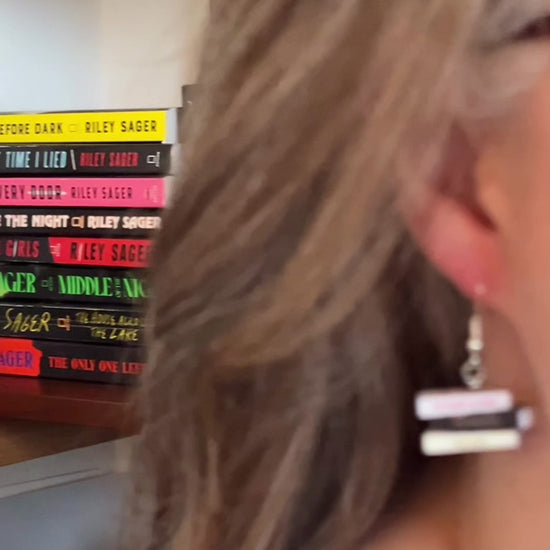 This pair of handmade earrings features an entire book series turned into two miniature book stacks (one book stack earring for each ear) creating a unique and cozy accessory perfect for book lovers, readers, librarians, book club gifts, author events, or everyday bookish style!