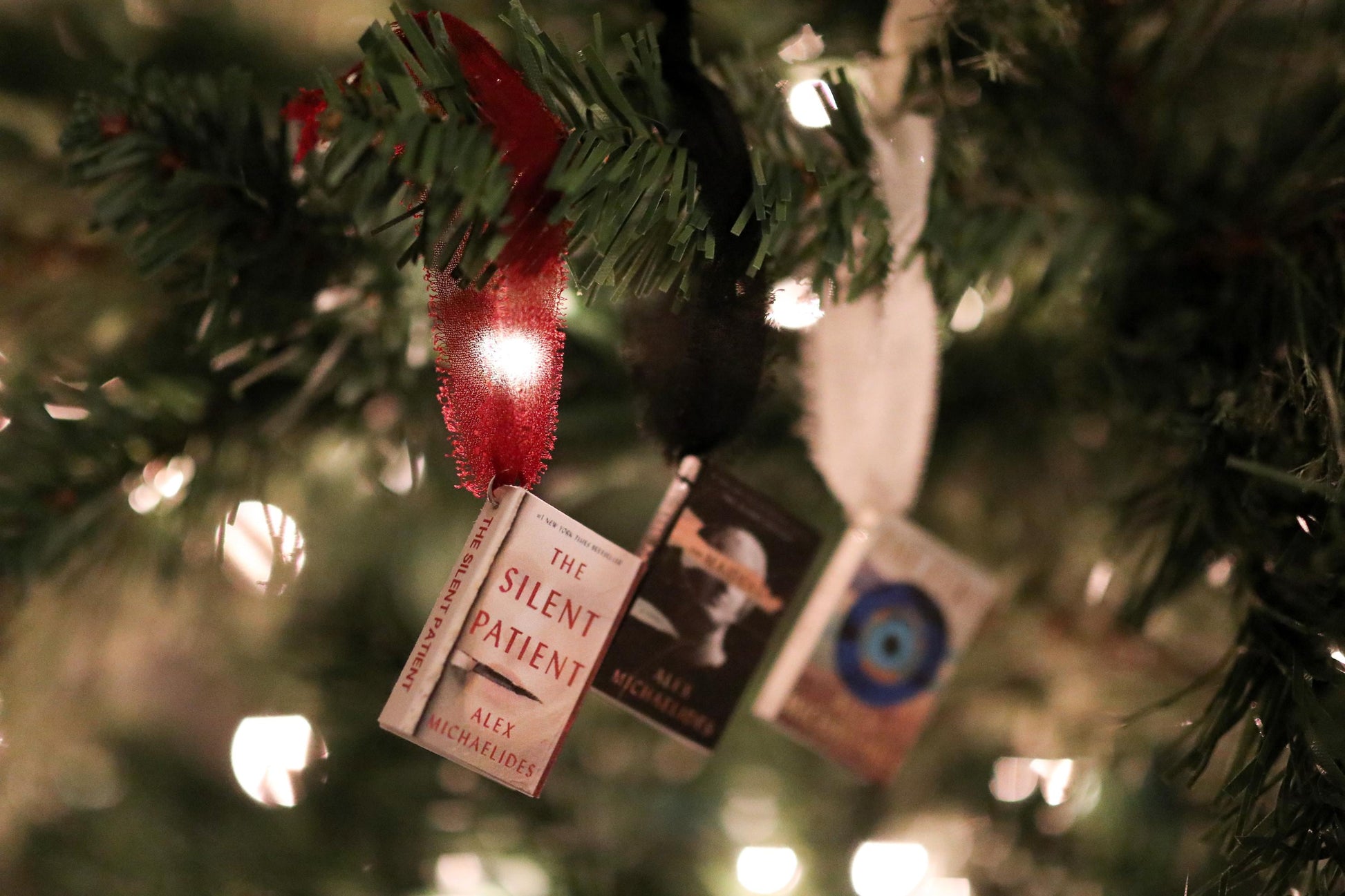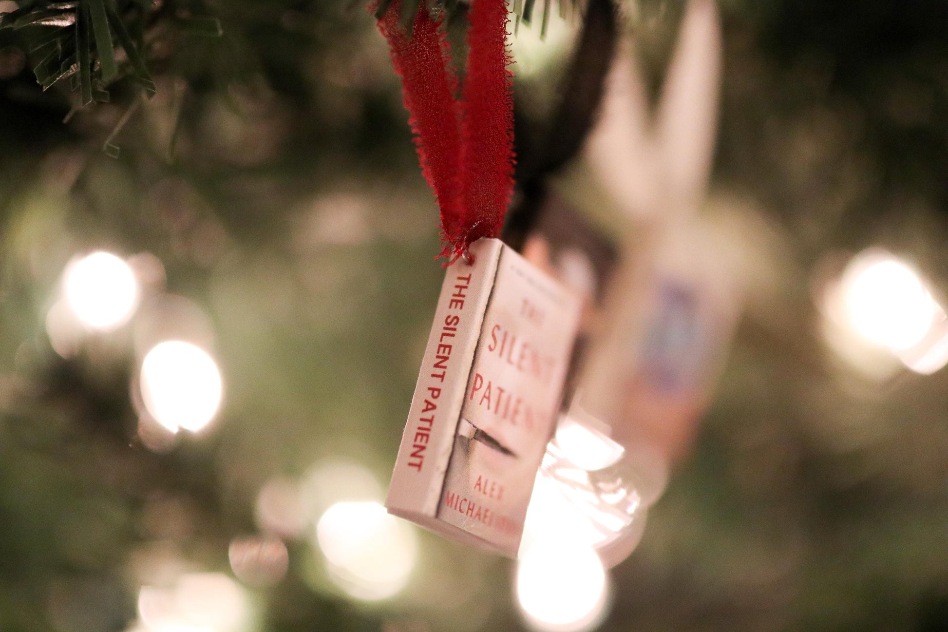 A handmade set of Alex Michaelides inspired mini book ornaments!