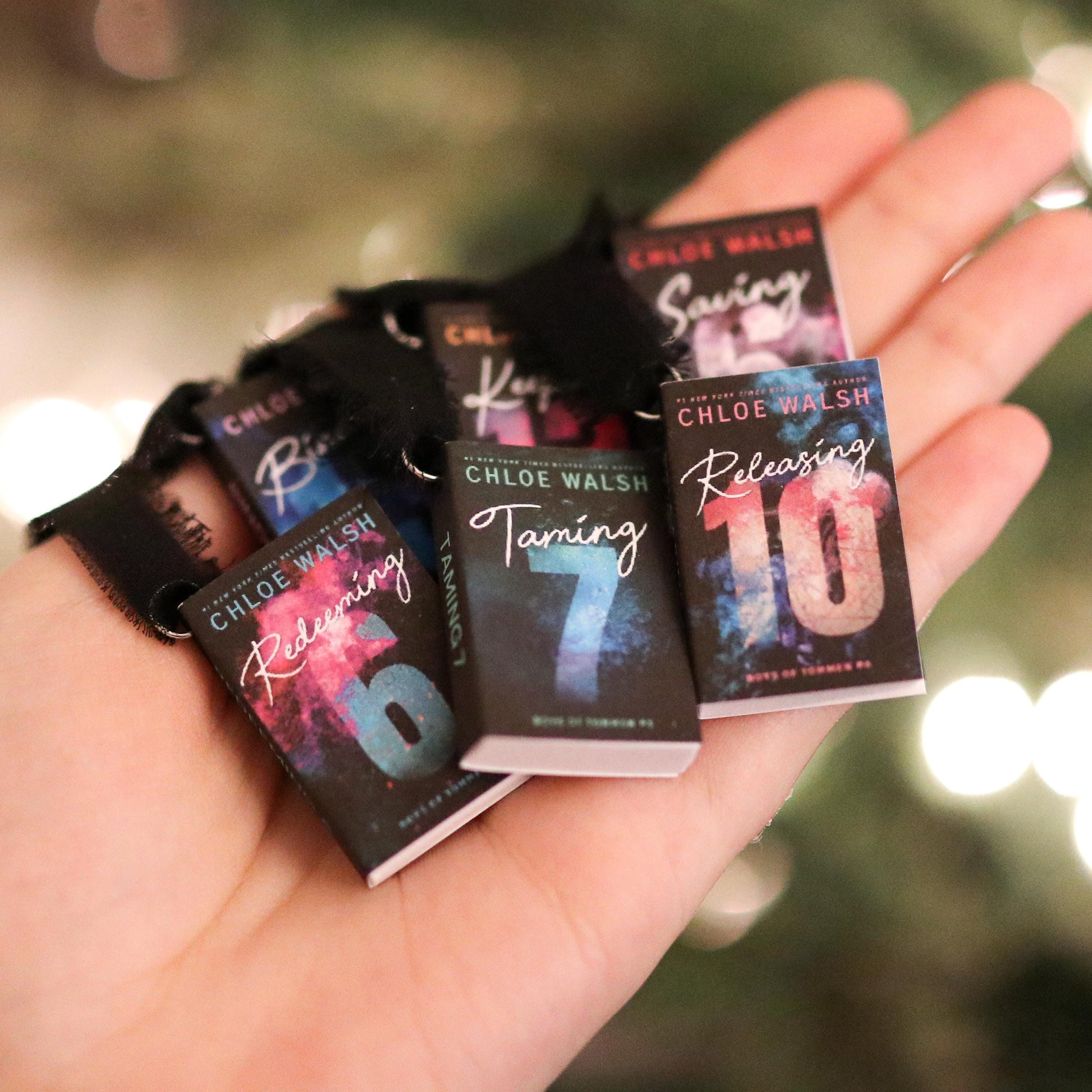 The cover is printed on the front, the spine is a solid colour with the title of the book, and the back displays the back cover of the book, giving each ornament a realistic and detailed miniature look from every angle.