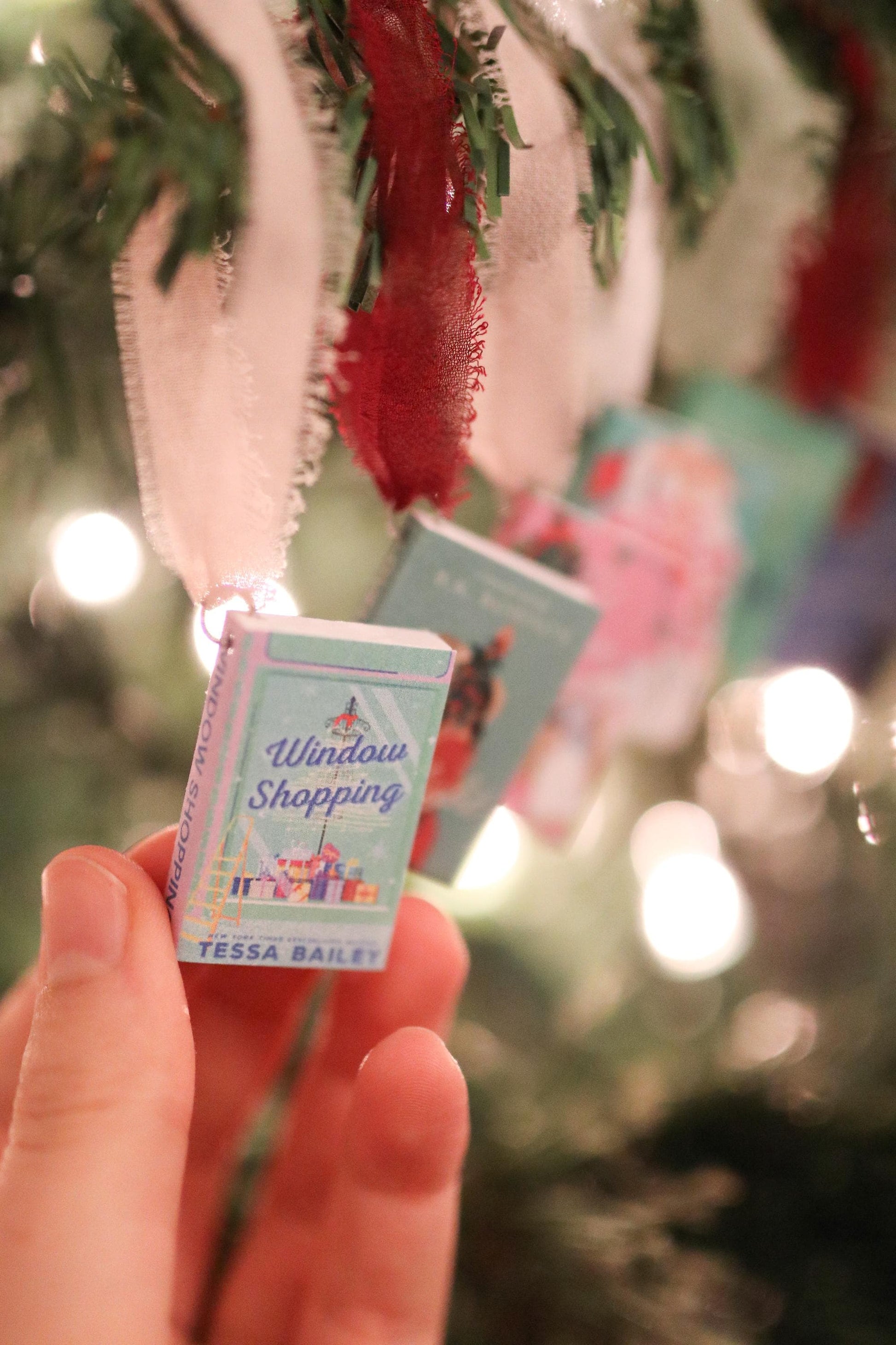 The cover is printed on the front, the spine is a solid colour with the title of the book, and the back displays the back cover of the book, giving each ornament a realistic and detailed miniature look from every angle.