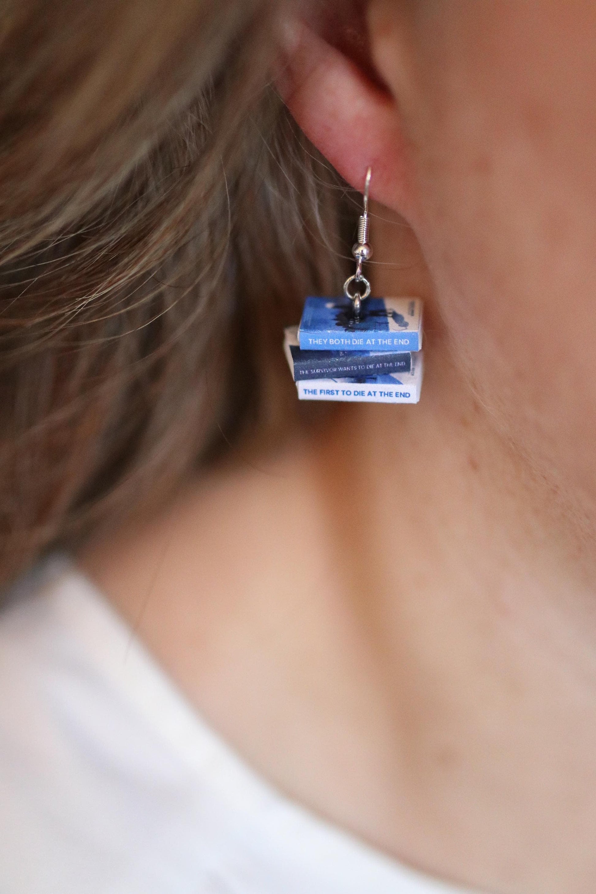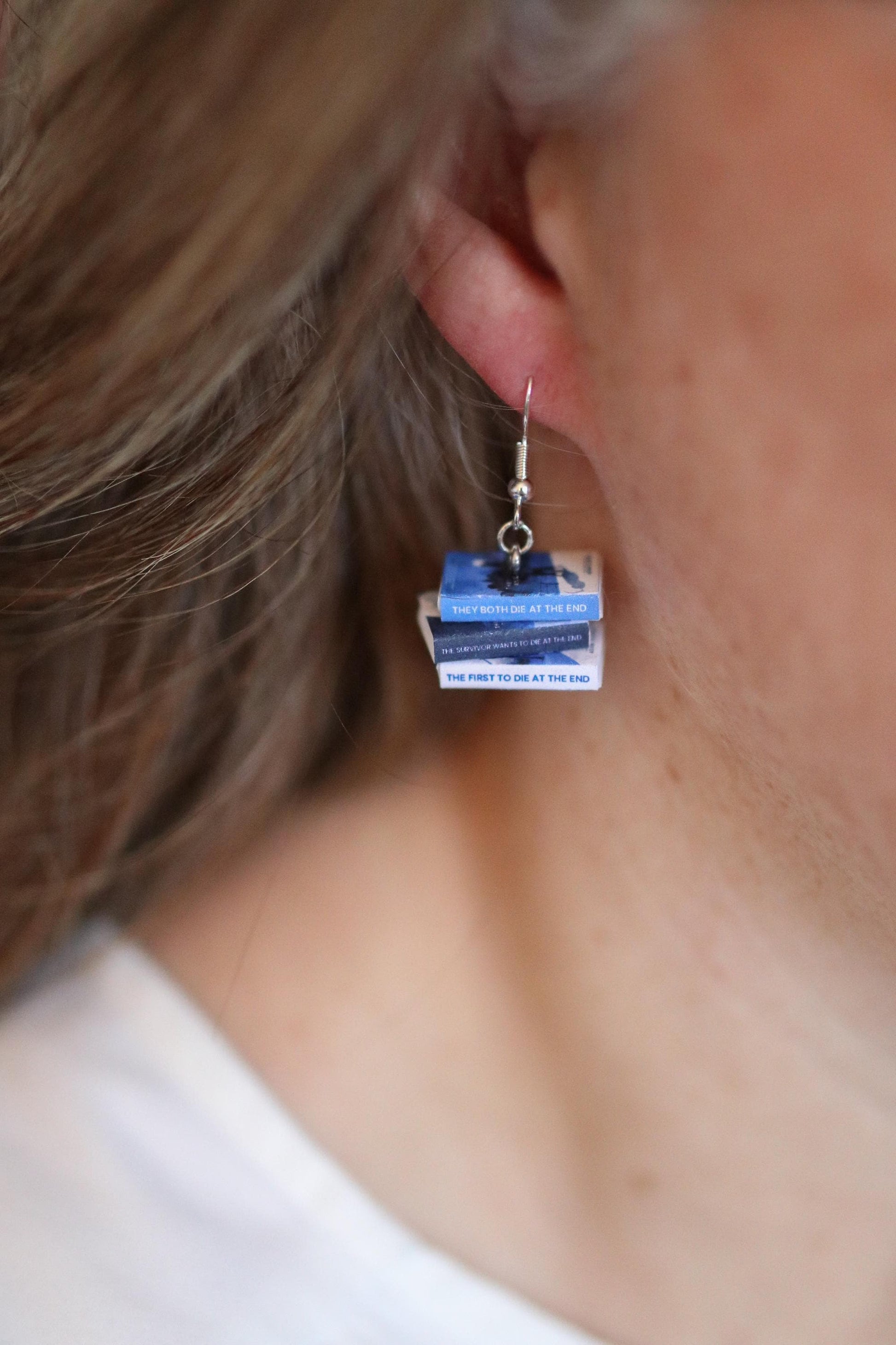 Each pair includes all of the books from the series, securely glued together in a cute stack to create realistic tiny towers of stories. Two matching stacks are carefully handcrafted by me to form a complete pair of earrings.