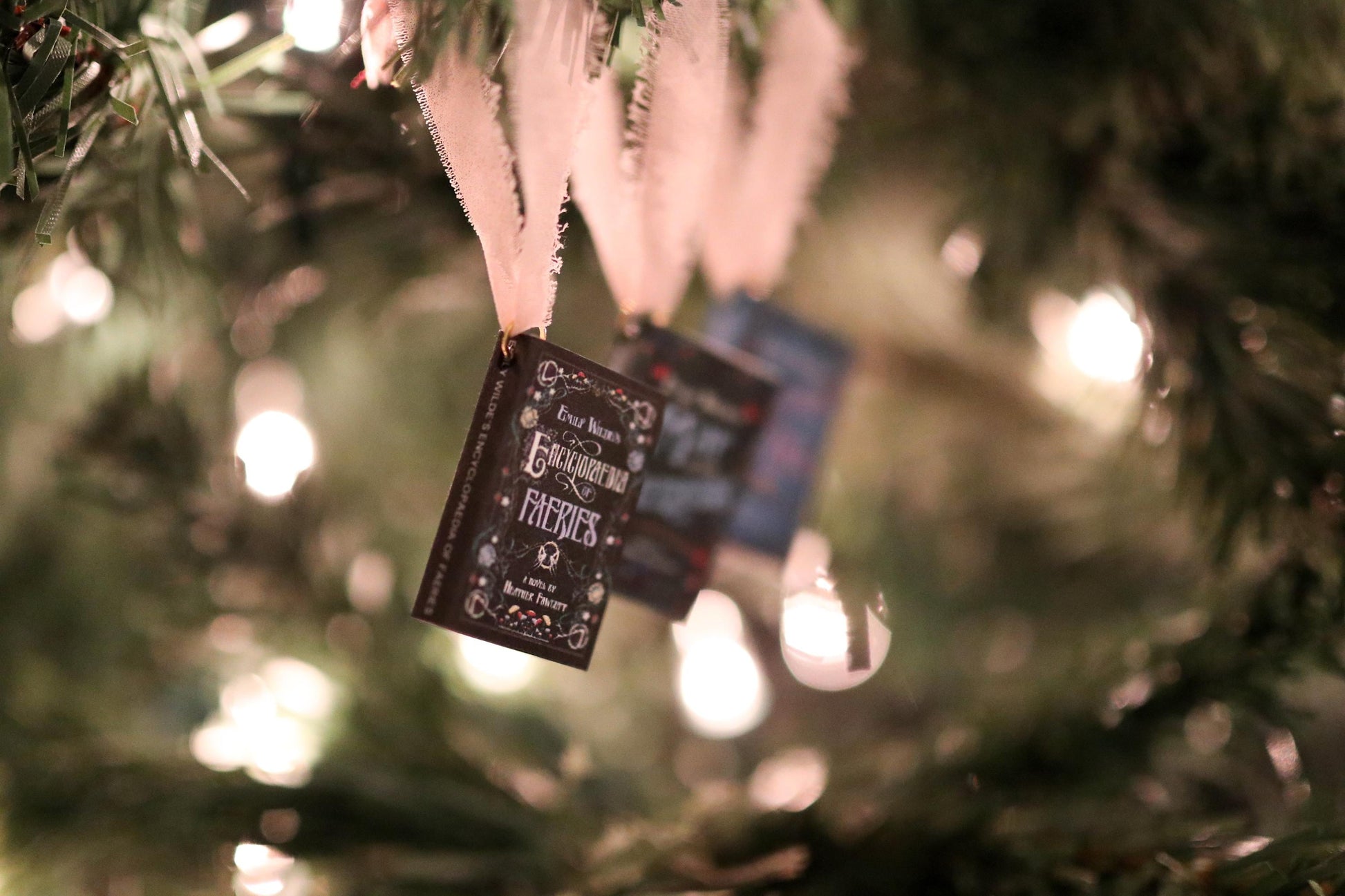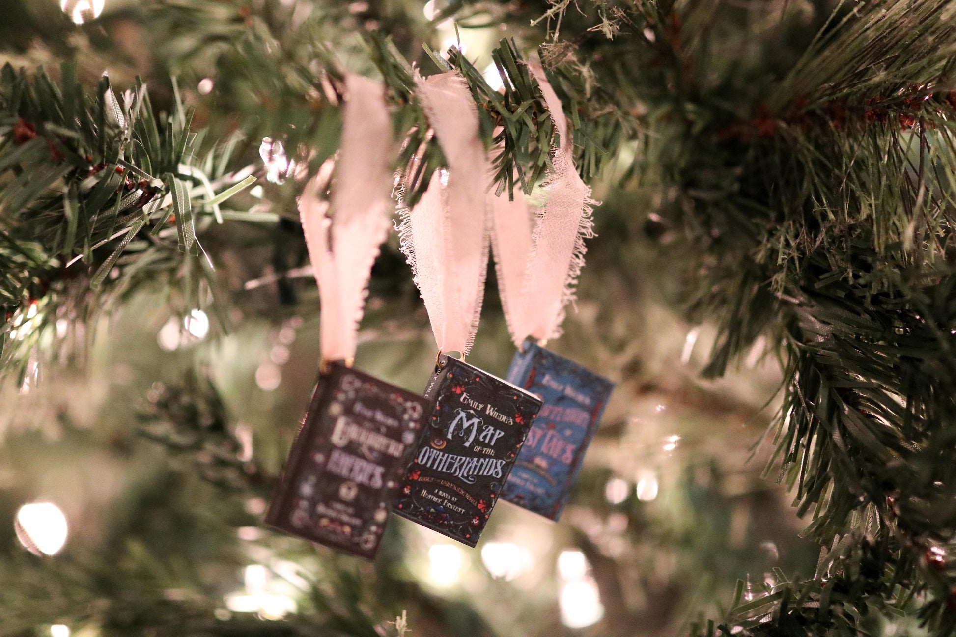 A handmade set of Emily Wilde mini book ornaments!