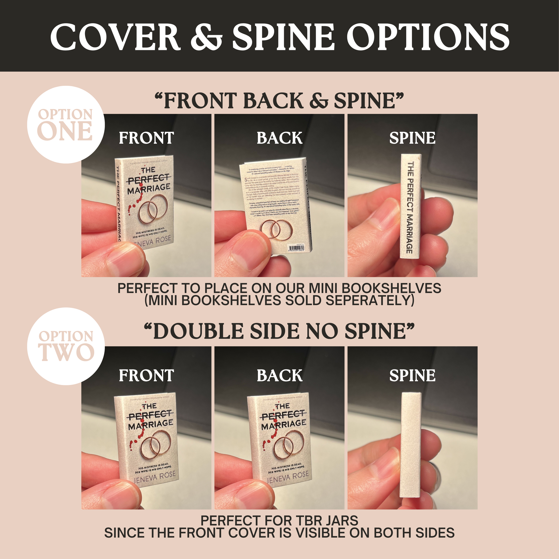 The cover is printed on both sides so you can turn them anyway and the cover will be visible! The spines are a solid colour. The books are printed on matte paper cardstock and glued to foamboard (this is different to our other custom mini books which are made of stacks of paper instead of foam like these ones).