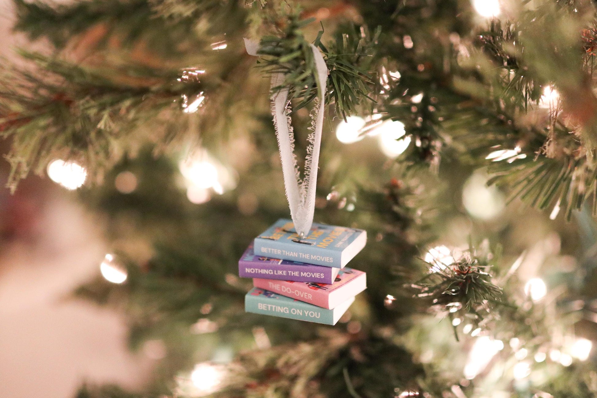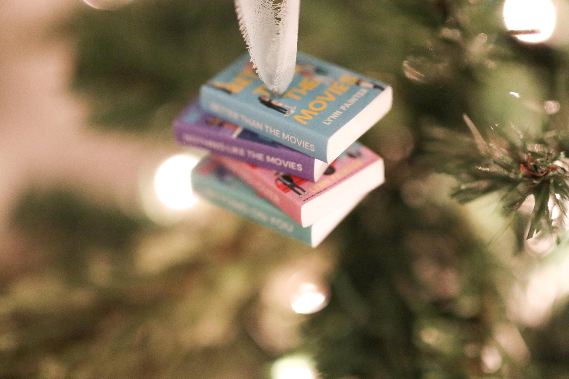 A handmade stacked mini book ornament inspired by Lynn Painter books!