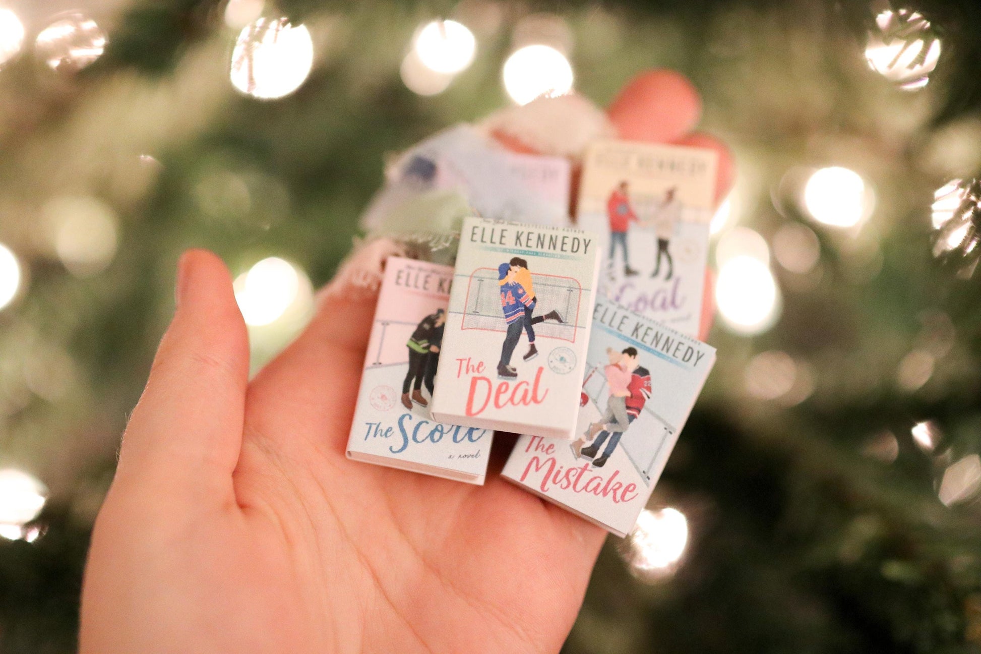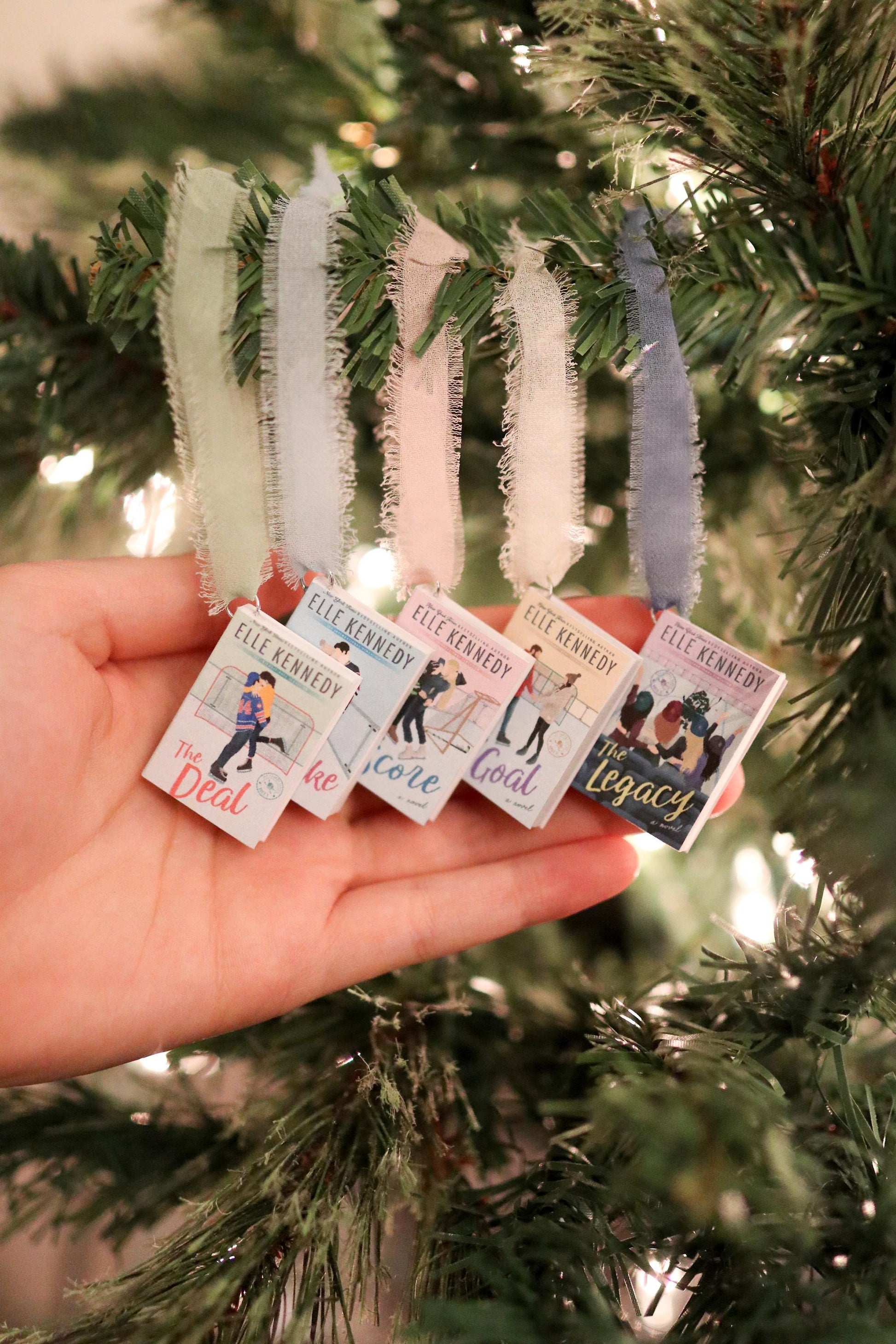 The cover is printed on the front, the spine is a solid colour with the title of the book, and the back displays the back cover of the book, giving each ornament a realistic and detailed miniature look from every angle.