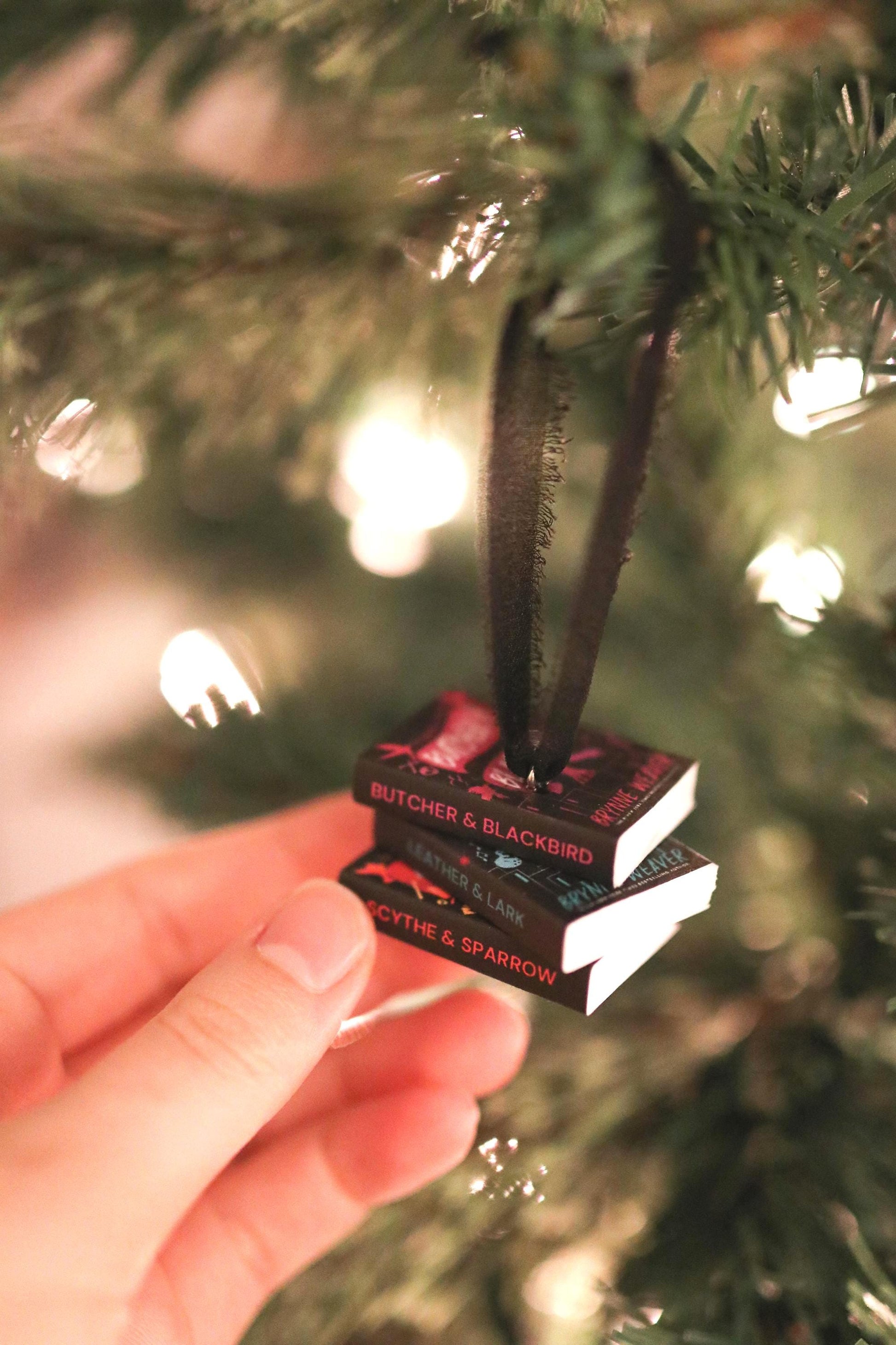 This ornament features an entire book series turned into one miniature book stack, perfect for book-themed Christmas trees, cozy reading nook decor, gift wrapping embellishments, or as a thoughtful gift for any book lover.
