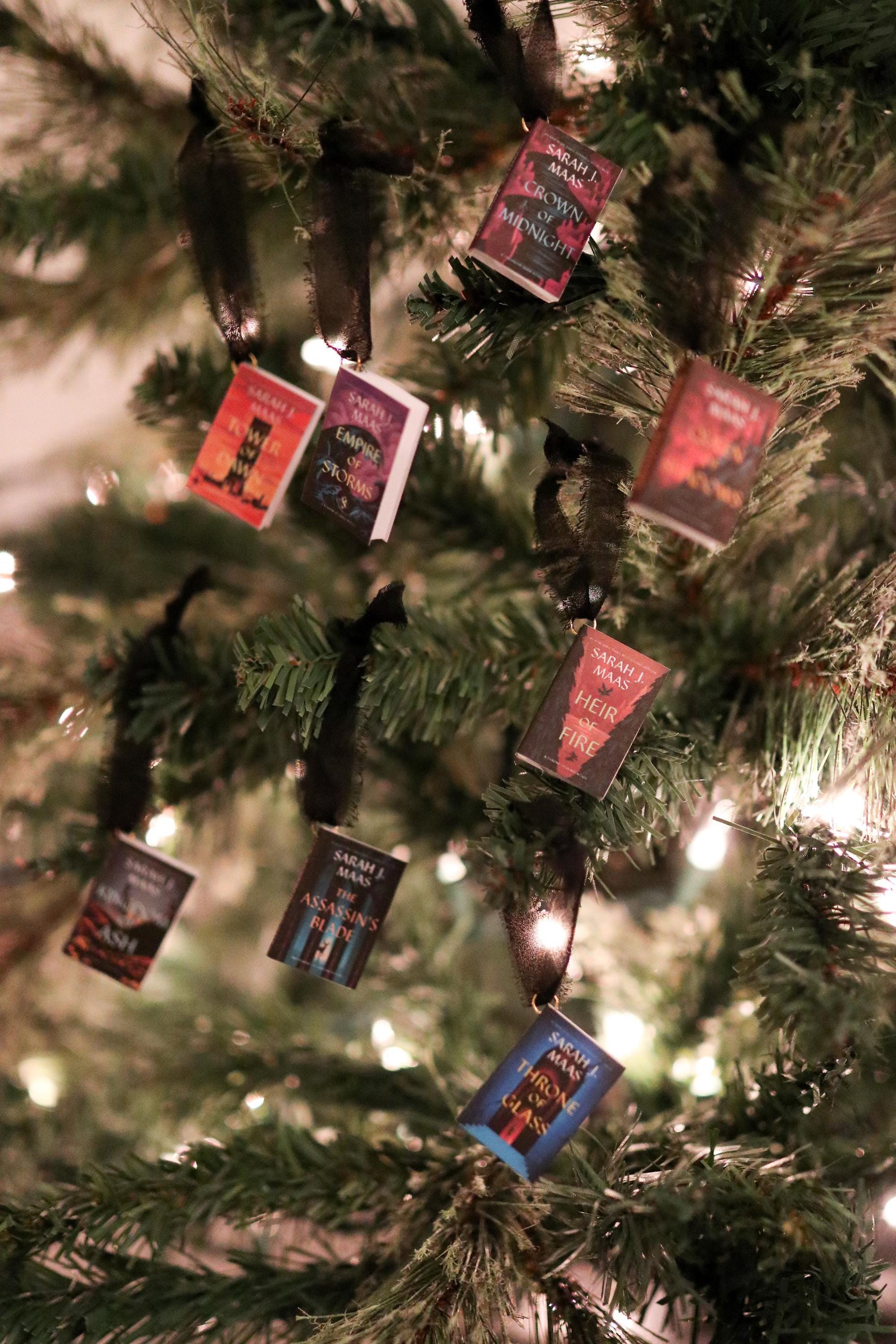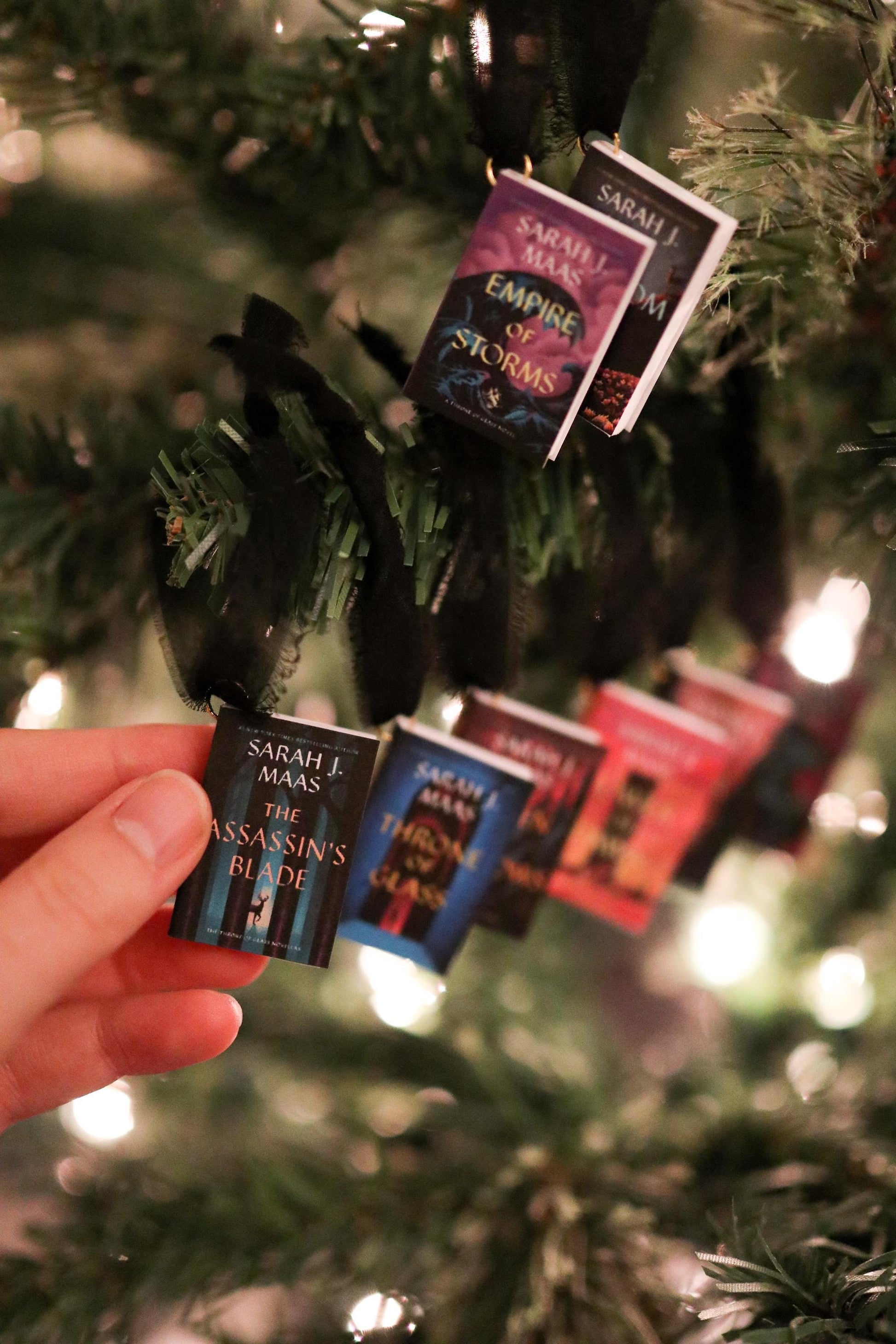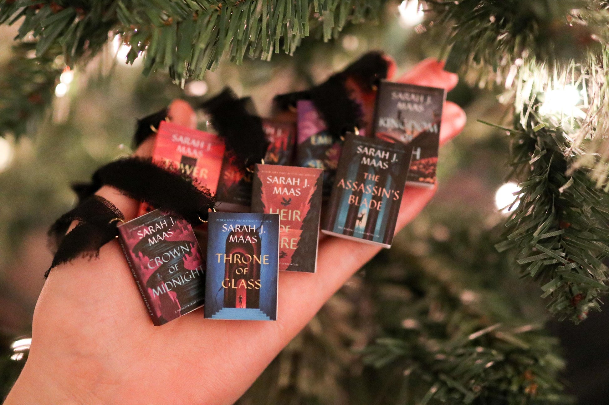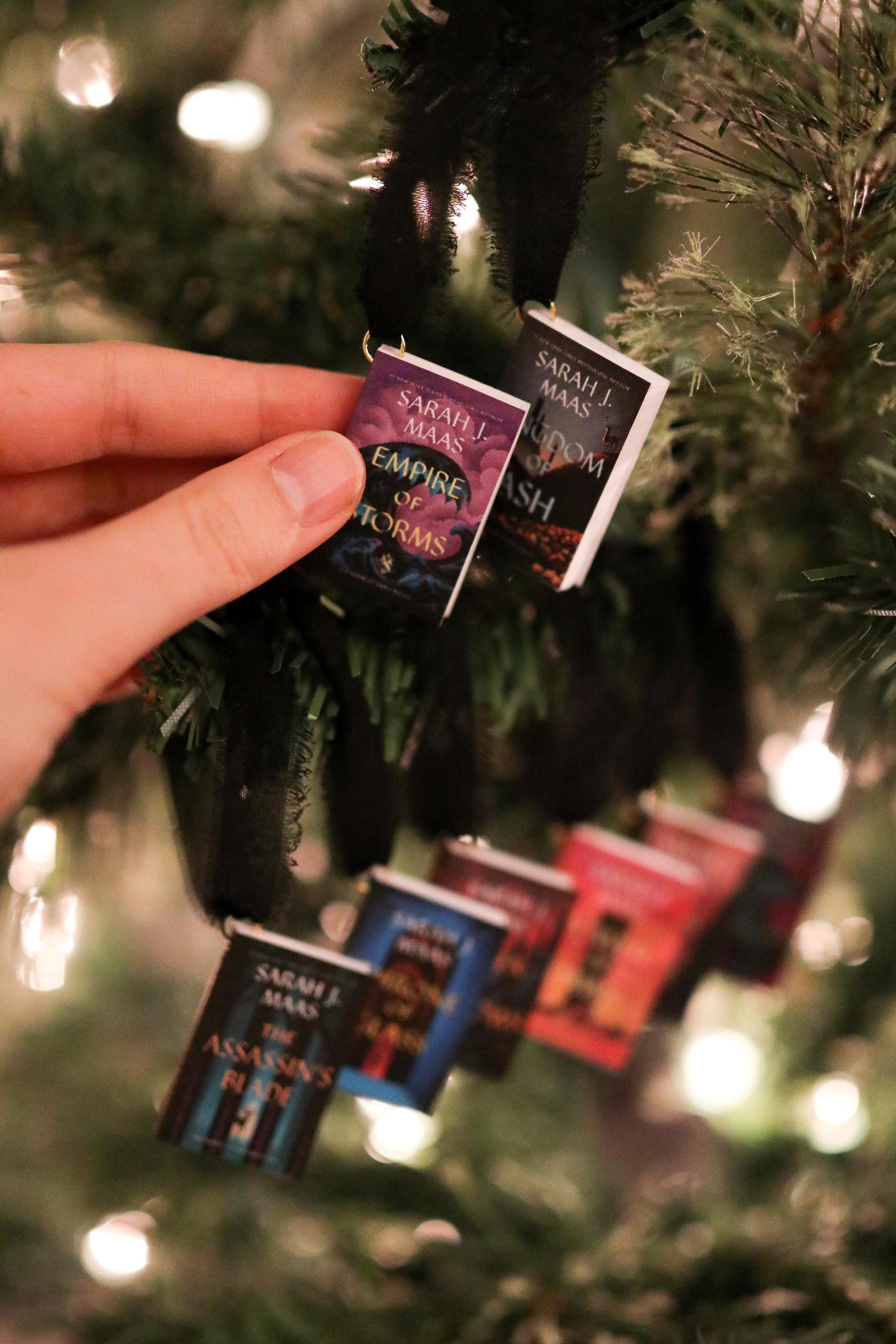 The cover is printed on the front, the spine is a solid colour with the title of the book, and the back displays the back cover of the book, giving each ornament a realistic and detailed miniature look from every angle.