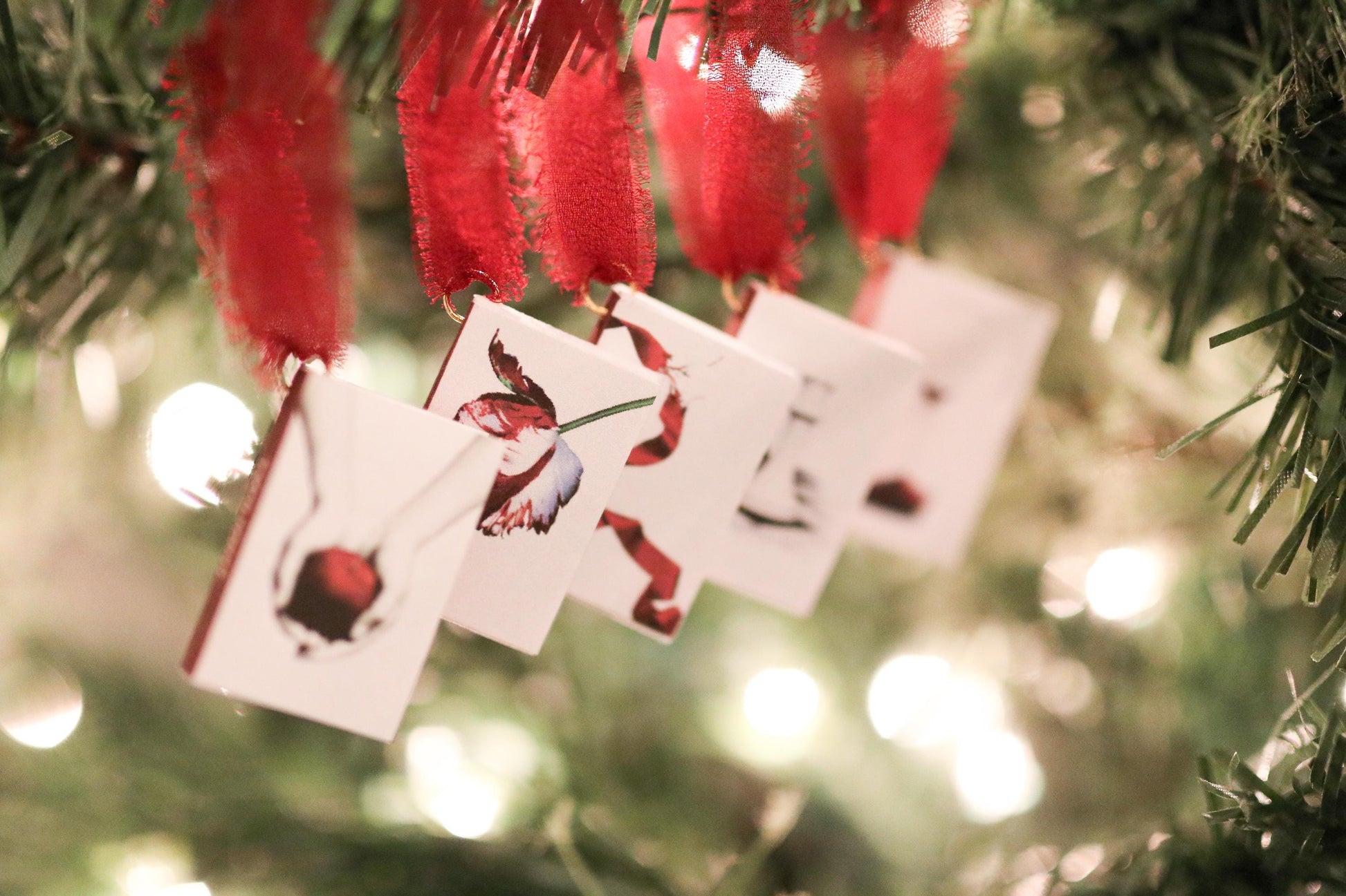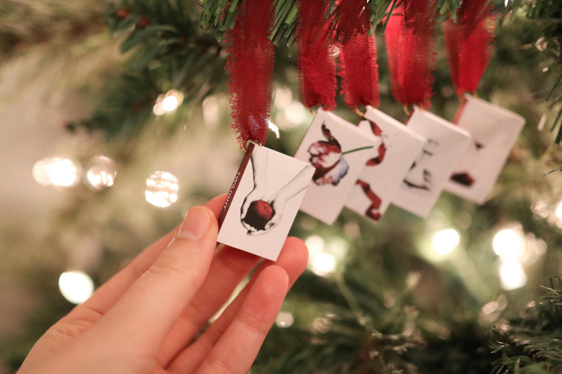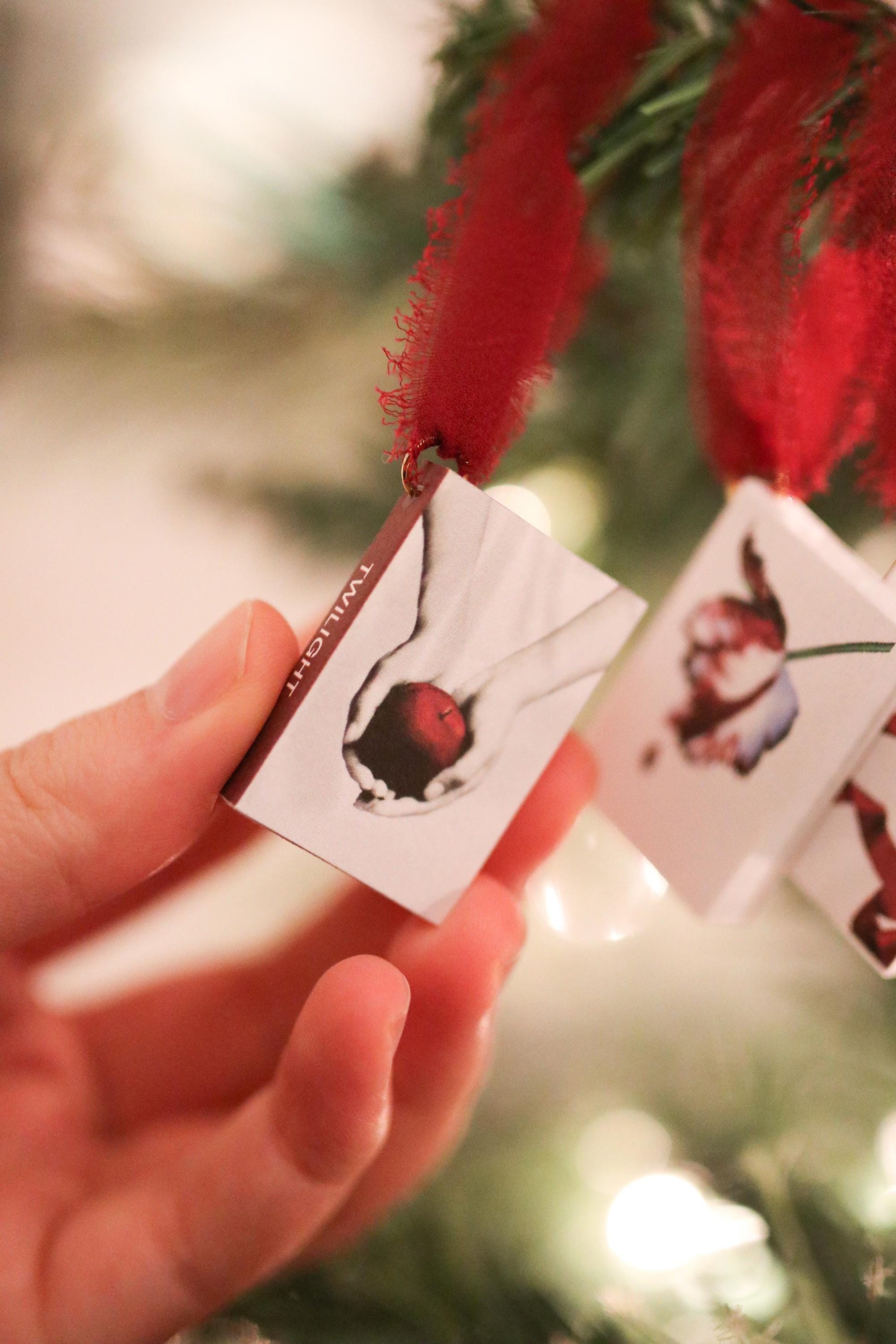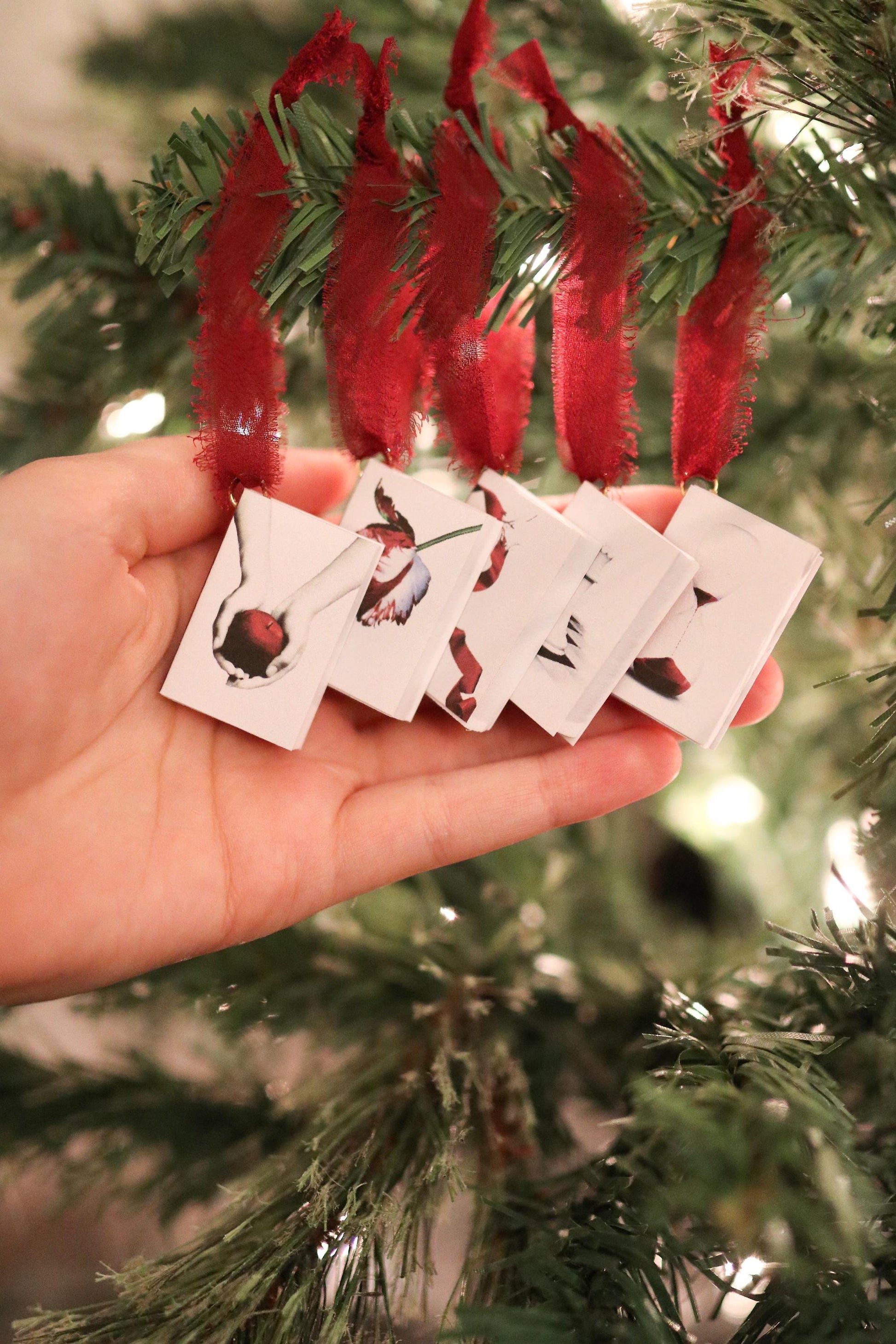 Each ornament features a jumper ring securely inserted through the book and finished with a high-quality chiffon ribbon tied by hand, ready to hang beautifully on your Christmas tree or any display.