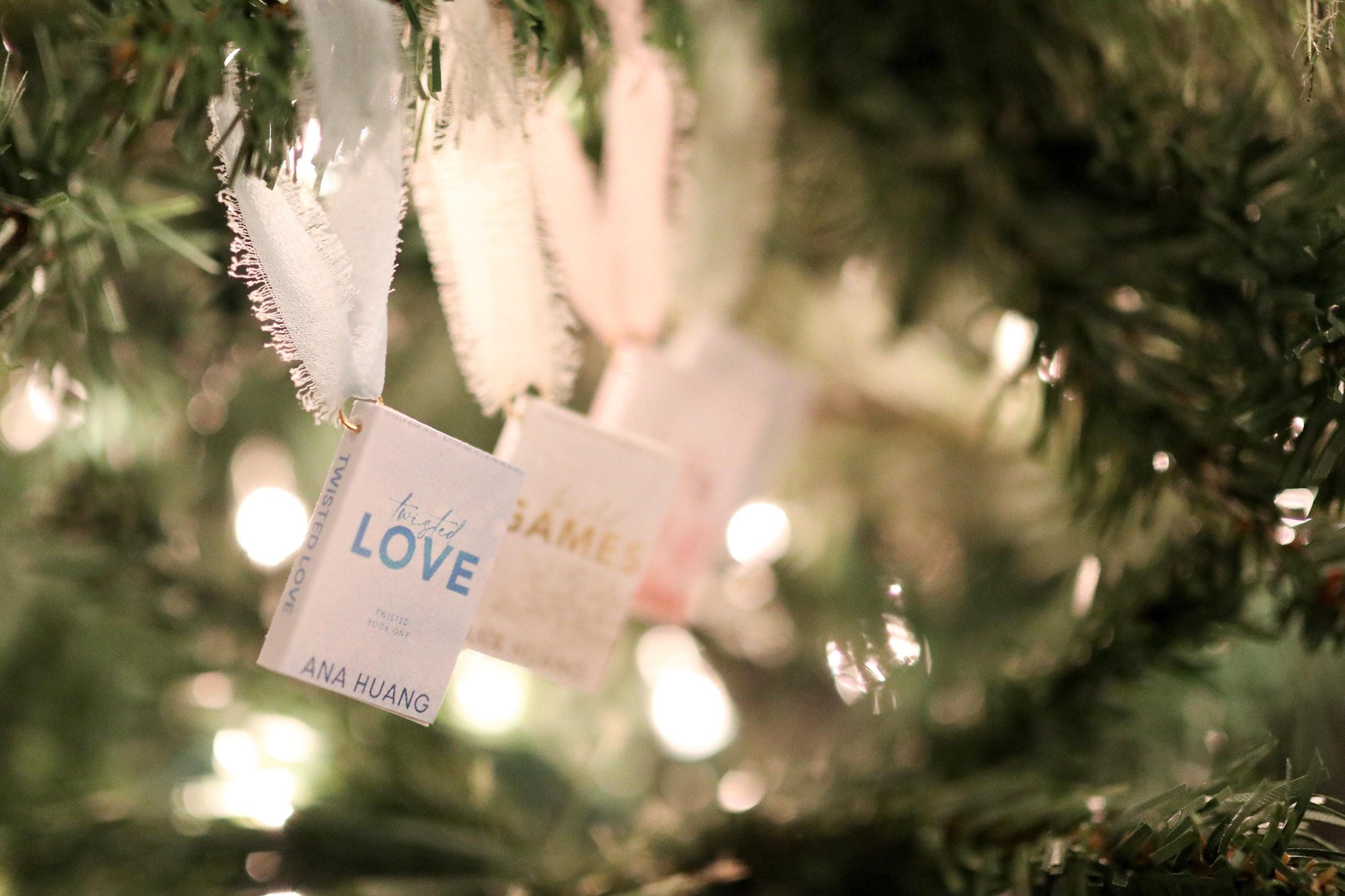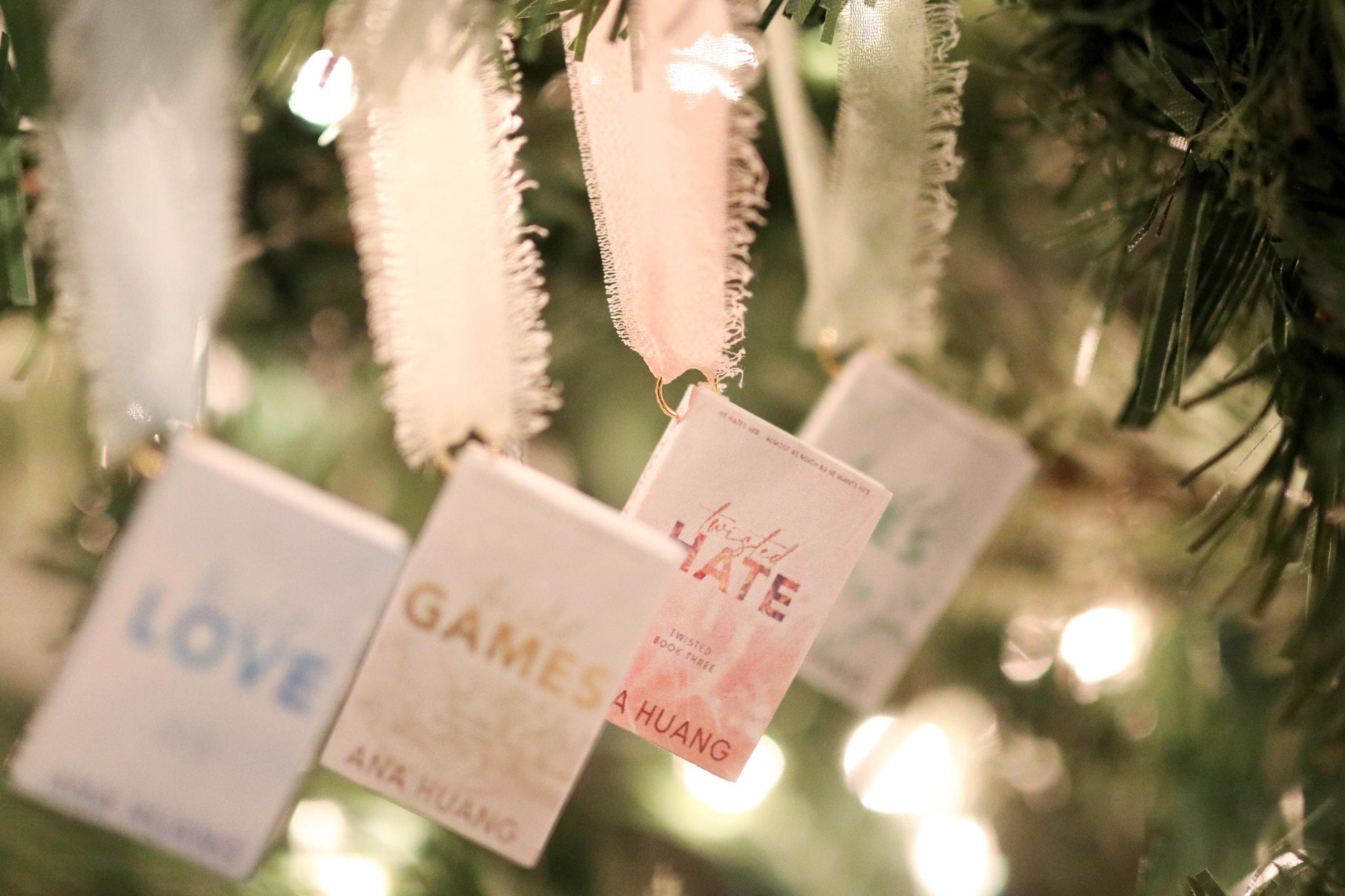 Each ornament features a jumper ring securely inserted through the book and finished with a high-quality chiffon ribbon tied by hand, ready to hang beautifully on your Christmas tree or any display.
